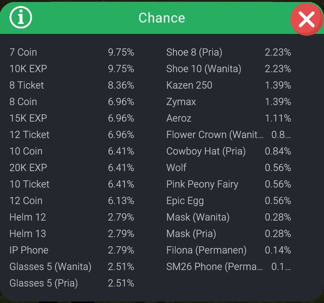 Isi LuckyBox dan Peluangnya.
