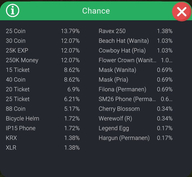 Isi LuckyBox dan Peluangnya.